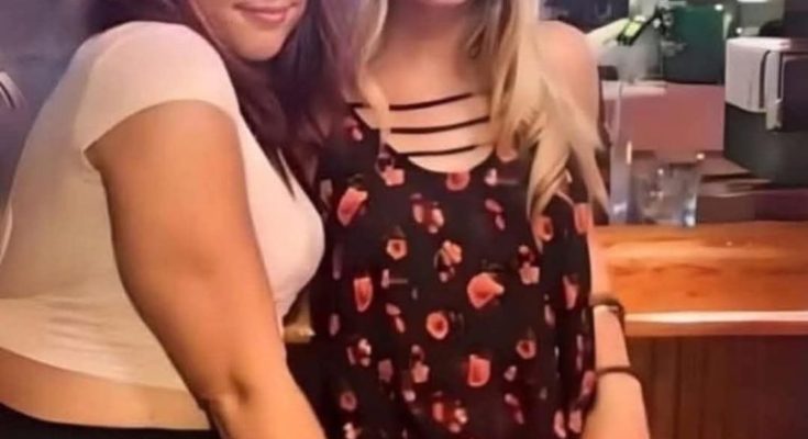 In the image, you see two young women sitting close together in what looks like a bar or lounge. The woman on the left is wearing a white crop top. The woman on the right is wearing a black floral top and a cute black hat, smiling brightly at the camera.